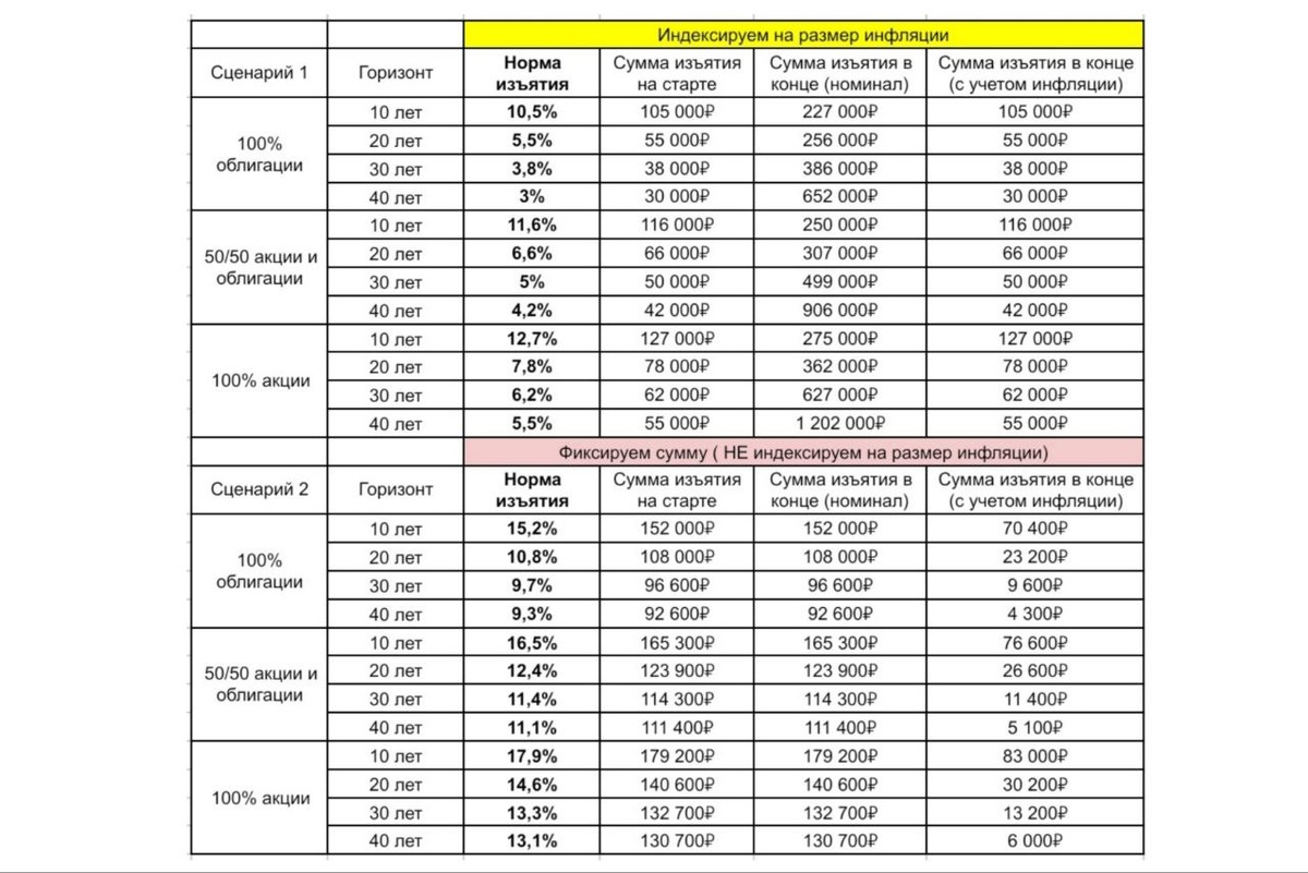 ? Безопасная норма изъятия — вечная тема для споров среди файерщиков. Очередная дискуссия в нашем чате стала поводом собрать мысли в один текст. Для начала договоримся о трёх вещах. Первое. Будущее неизвестно. Любые расчёты опираются на прошлые данные: инфляцию и доходность рынков за 15–20 лет. Но никто не гарантирует, что следующие 20 лет инфляция не будет 15%, а доходность — 5%. При таком раскладе никакого FIRE ни у кого не будет. Второе. Есть инфляция образа жизни, и она бывает отрицательной. Расходы растут не только из-за цен, но и из-за привычек. В первой половине жизни растут доходы, а с ними — и уровень комфорта. Во второй — траты часто снижаются. Иногда вынужденно, иногда из-за возраста. Всё-таки в 80 лет уже сложнее путешествовать и гонять на спорткаре. Третье. Никто не знает, сколько лет ему отпущено. Каждый сам выбирает: равномерно распределять расходы до 90–100 лет или тратить больше тогда, когда деньги приносят максимум удовольствия. А на период после 80 оставлять баз