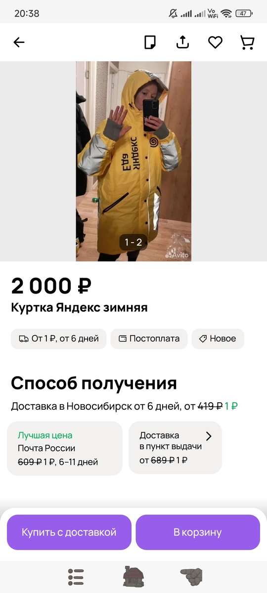 Недавно заходила на Авито и в рекомендациях мне попалось объявление о продаже зимней куртки Яндекс еды, фотография стояла моя👀 Но объявление точно не моё😁