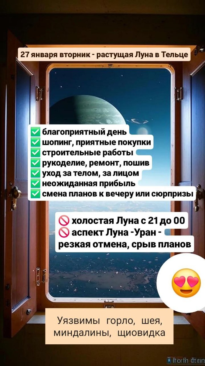 Вечером Луна соединяется с Ураном и либо принесет неожиданные сюрпризы, либо срыв планов и договоренностей. Напоминание дня: Сфокусируйся на своих лучших сторонах, и том, что у тебя получается лучше всего.