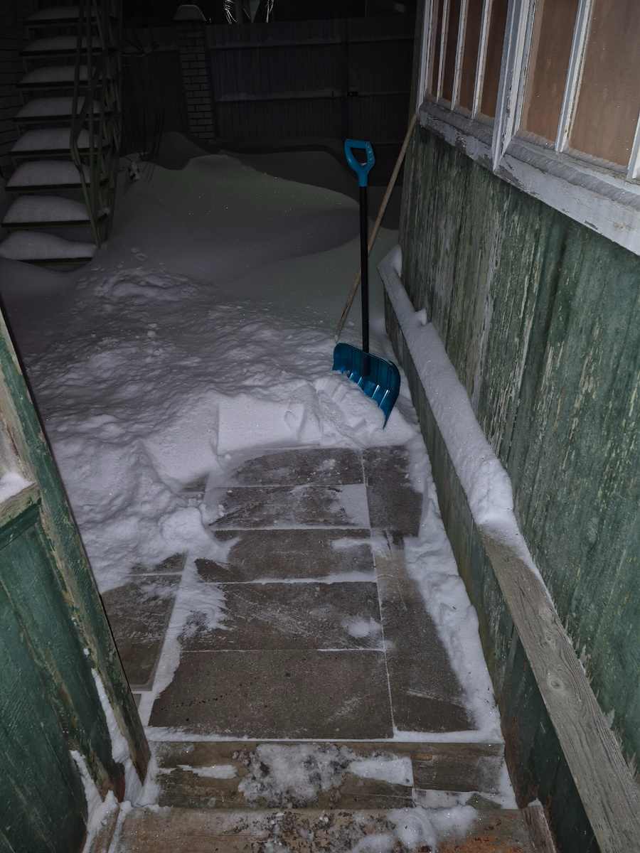 6-20 - откапываемся))Всю ночь шел снег.Насыпало сантиметров 20-25) И вместо того, чтобы спокойно собираться на работу, пришлось поработать лопатой) Нужно прогрести дорожки и к туалету(он у нас "деревенский") и к калитке.Дорожки, шириной со снеговую лопату, чтобы пройти, тут уж не до расчистки, можно так и на работу опоздать)) Хорошо, что сегодня у мужа