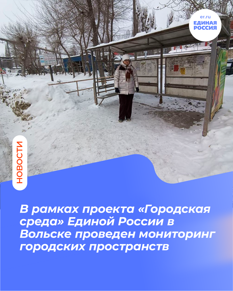 Местный координатор партпроекта «Городская среда» Вольского местного отделения партии Инна Сушенкова совместно со специалистами побывали в микрорайонах города и оценили качество уборки снежного покрова на более 20 павильонах.