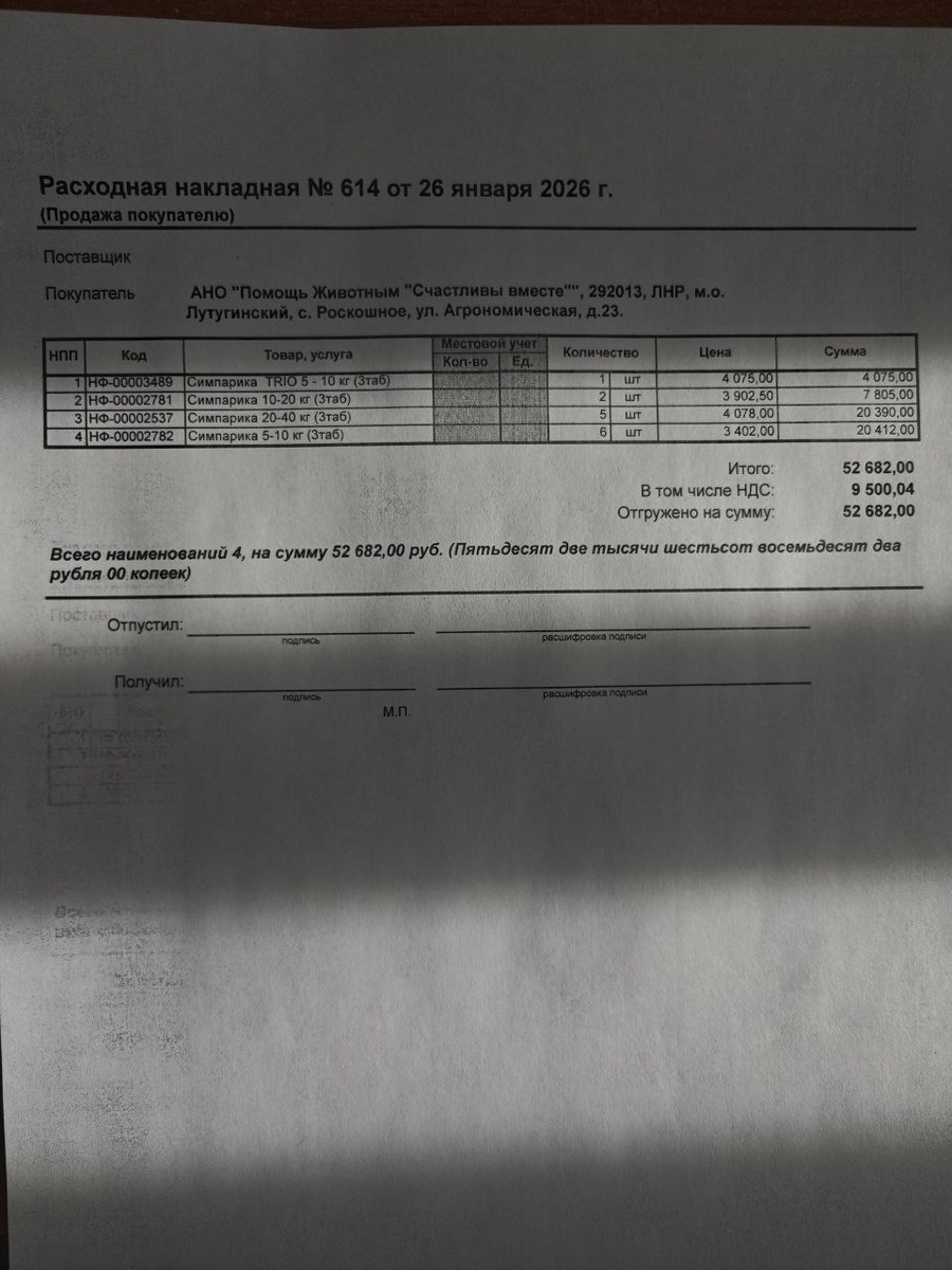 У нас срочный сбор,друзья!!! Часть обработки мы заказали на прошлой неделе... Сейчас докупаем ещё,тем более приюту отдают по божеской цене...Это ВАЖНО!!! Приют - это не только обогреть и накормить)Это регулярные и своевременные обработки жителей приюта...Ищем волшебников ,которые помогут оплатить эту накладную 🙏🙏🙏