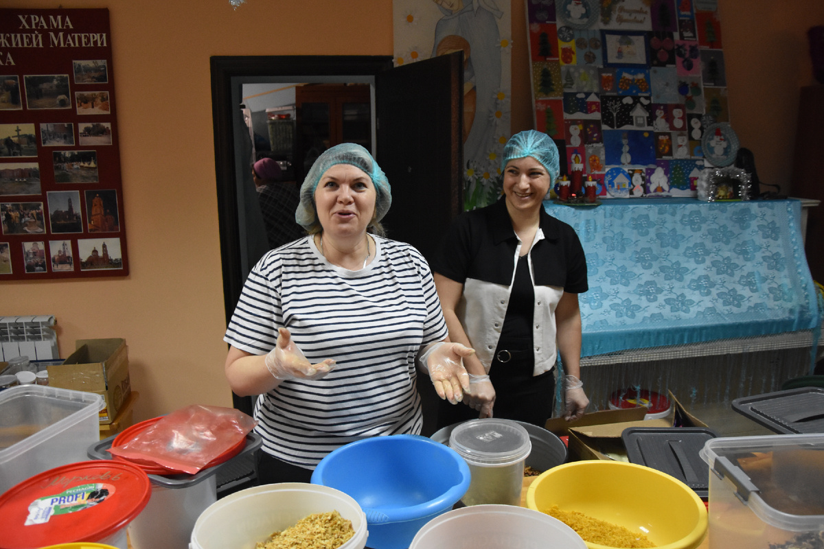 В помещении храма витает аромат — густой и наваристый, как на большой семейной кухне. Но церковные свечи здесь соседствуют со станками для запайки полимерных пакетов, а богослужебные книги — с картами рецептов.