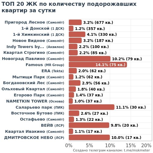 ) 🏆 ЛИДЕРЫ ПО РОСТУ: Самолёт 23 ЖК 1416кв +5,2% ПИК 20 ЖК 150кв +6,2% 1 ДСК 6 ЖК 706кв +3,6% Гранель 5 ЖК 6кв +10,5% ЛСР 5 ЖК 52кв +5,3% MR Group 4 ЖК 78кв +7,8% Брусника 4 ЖК 11кв +4,1% Абсолют 3 ЖК 17кв +2,0% Основа 2 ЖК 38кв +6,1% A101 2 ЖК 3кв +9,4% 👇 Полная статистика: 📲 В Telegram — быстро посмотреть 🌐 На MskMeter.ru — графики цен и скидки за любой период