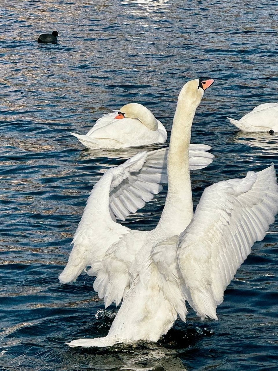 🦢Лебединое царство в Анапе с большим аппетитом угощаются овсяными хлопьями