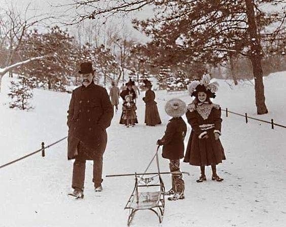 Да, в 1890-х в Нью-Йорке были настоящие снежные зимы! Настолько прекрасные, что санки и снеговики были обычным делом!