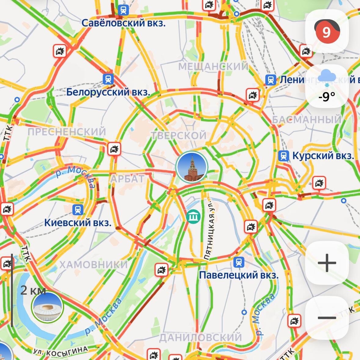 🚦9-балльные пробки сковали Москву в 9 утра из-за сильнейшего снегопада.