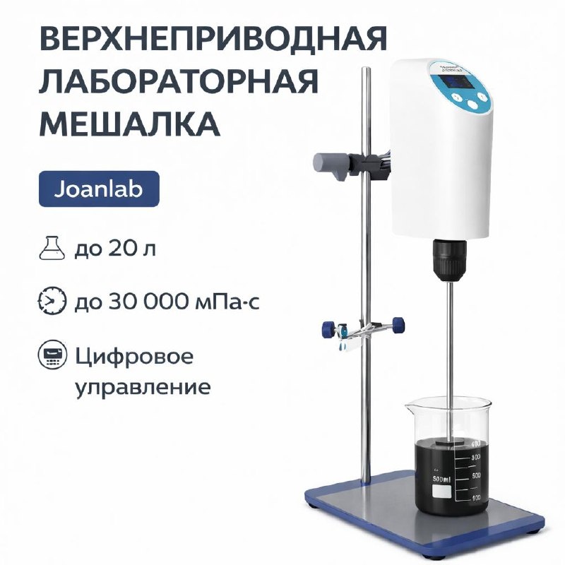 Joanlab OSC-20L — лабораторная мешалка с верхним приводом и цифровым контролем, предназначенная для перемешивания жидкостей и вязких сред