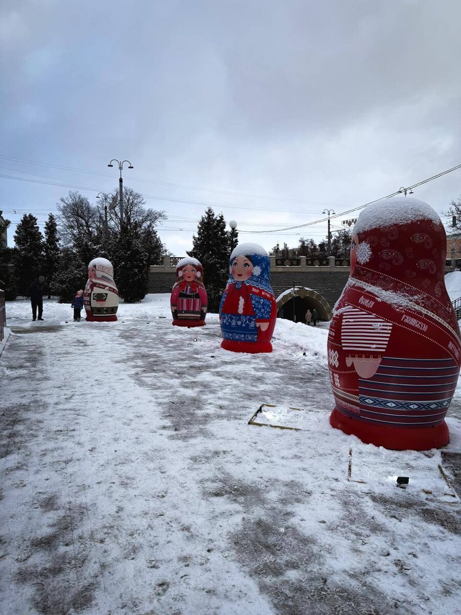 Сама по себе Рязань почему-то никогда не входила в наш топ желаемых городов, несмотря на то, что это тоже старинный город, без 70 лет тысячник. Возможно влияли отзывы знакомых, все как один говорящих, что там нечего смотреть. Но что-то изменилось, когда мы узнали, что в 2025 Рязань объявлена столицей Нового года в России. Совпало с приездом мамы Насти, и мы, недолго думая, решили показать ей красивые подмосковские места. Взяли карш, маршрут до места назначения занял больше 5 часов, тяжелая дорога - снегопад, пробки, хотя выехали мы, ещё трёх не было. Лучше никогда не выезжать в пятницу. Платной дороги до Рязани нет. Первое впечатление - напомнил родной Томск, нет единого городского года, нет урн, плохие дороги. Много стройки, точечно стоят дорогие дома с непонятным экстерьером. Немного несуразный и совсем не уютный (да простят нас рязанцы). Столица Нового года разочаровала нас. Ничего столичного там не оказалось. Кажется, что в Рязани творятся «распильные» дела, в местных каналах б