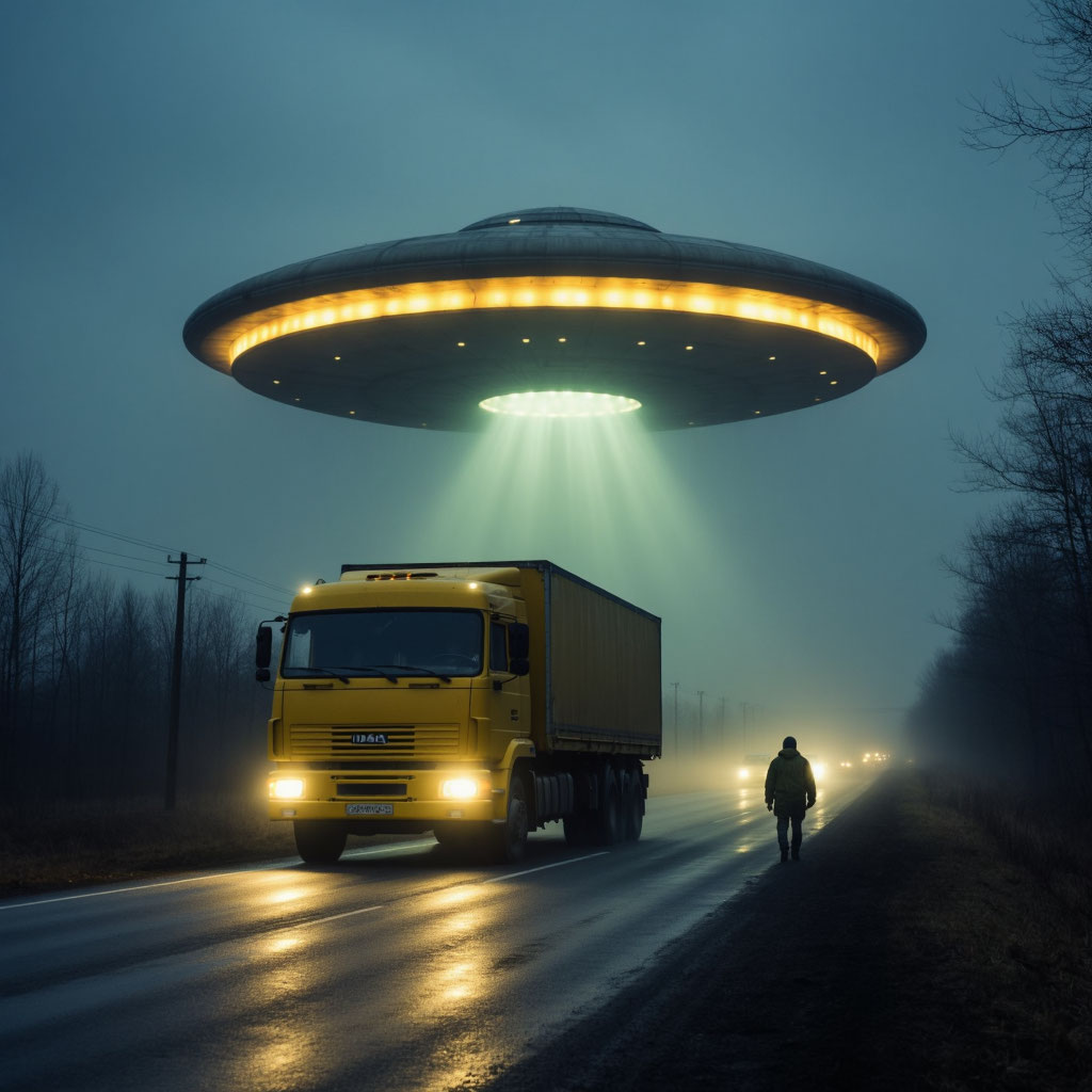 В 1990 году, когда страна жила на стыке эпох, а люди чаще смотрели под ноги, чем в небо, на трассе между двумя небольшими городками в Центральной России случилось то, что до сих пор заставляет водителей замедлять ход на том самом участке дороги. Был сентябрь — время, когда вечера уже прохладные, а темнота опускается быстро. Шофёр‑дальнобойщик Виктор Малышев вёз груз в соседнюю область. Часы показывали без пяти одиннадцать, когда он миновал указатель «76‑й километр». Дорога была пустой, фары выхватывали из мрака разметку и обочину, поросшую полынью. Виктор включил радио, но вместо музыки услышал лишь шипение помех. Он хотел переключить волну, но в этот момент впереди вспыхнул свет. Сначала он подумал, что это фары встречной машины. Но свет не приближался по полосам — он нависал над трассой, словно завис в нескольких метрах от асфальта. Виктор резко сбавил скорость и остановил грузовик. Вышел, прищурился, пытаясь разглядеть источник сияния. Над дорогой, буквально в двадцати метрах над зе
