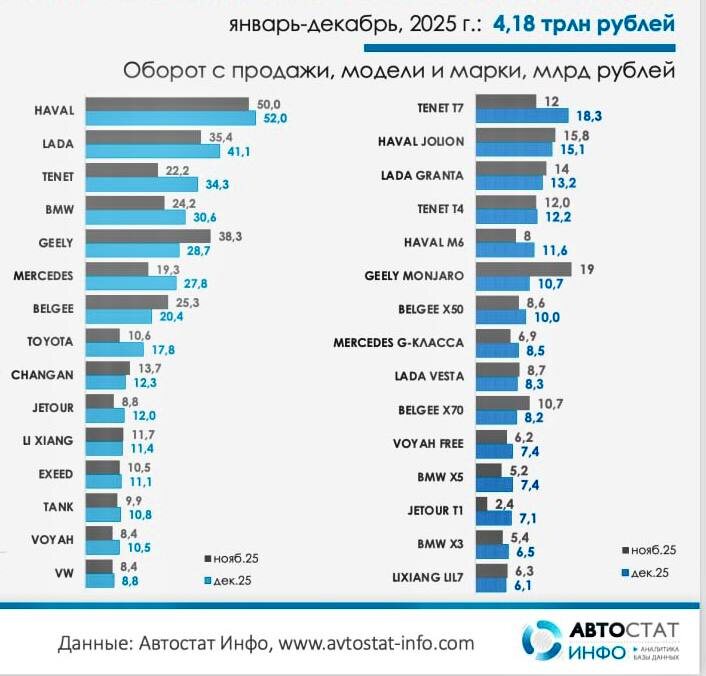 Всего в России было куплено легковых автомобилей на ₽4 200 000 000 000 (4.2 триллиона рублей). На представленной картинке перечислены 15 компаний-рекордсменов, собравших наибольшую выручку в последние два месяца ушедшего года. Лично моё внимание привлекли 4-я, 6-я, 8-я и 15-я позиции рейтинга. А ваше? «Щукин и всё»
