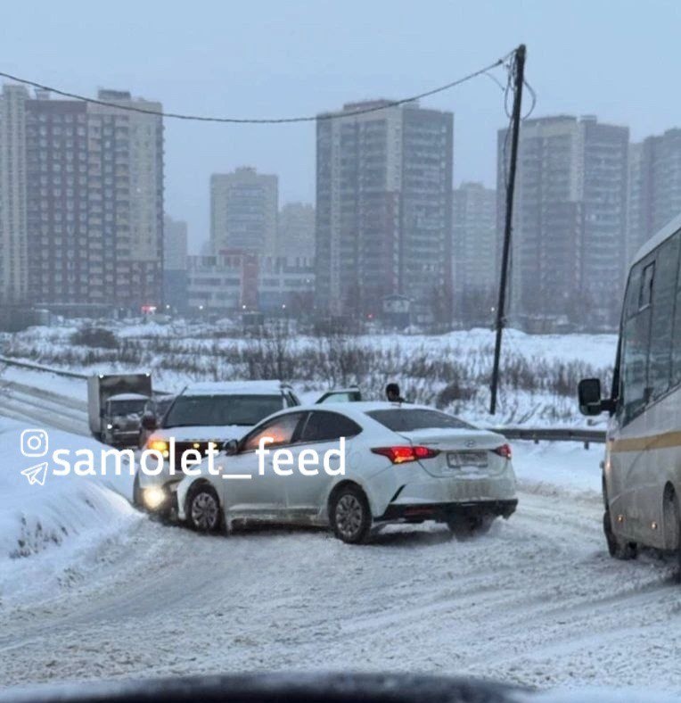 На выезде из ЖК со стороны улицы Каштановой авария.