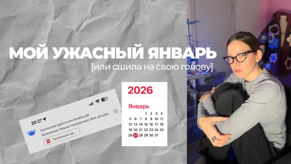 Обсуждаю свой январь💔 Досудебная претензия за пошив цветочного пуховика, поиски юриста по интеллектуальным правам, переговоры... это лишь малая часть того что происходило со мной в январе. За этими событиями скрываются эмоциональные качели, нервы, отказ от творчества... Что будет дальше? Не знаю. Просто продолжаю жить свою жизнь: у дочки прошел отчетный концерт, я прохожу стажировку на работу, мы планируем отпуск. Обо всем этом в видео, приятного просмотра!