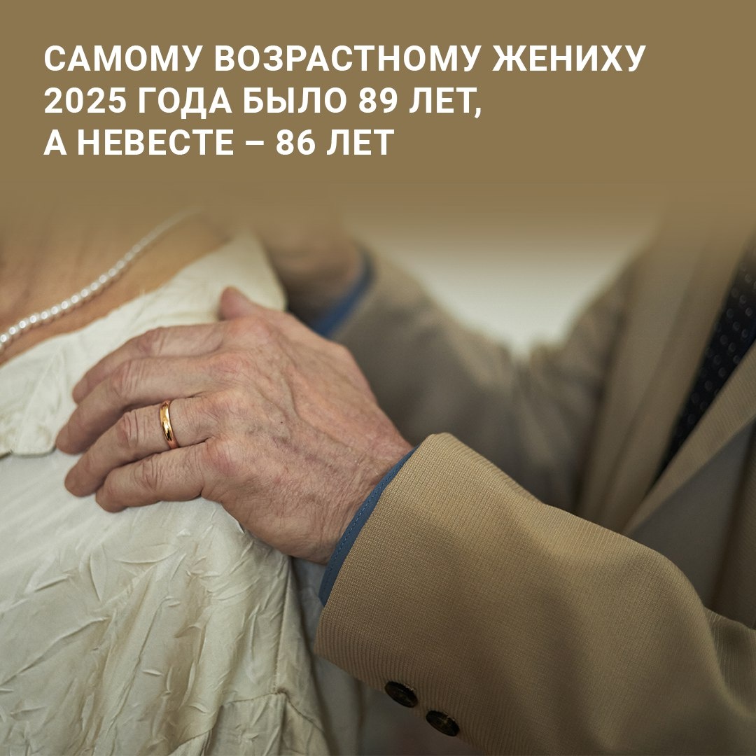 Такие данные приводит Комитет ЗАГС Пермского края. Брак 89-летнего жениха и его спутницы 72 лет был зарегистрирован в отделе ЗАГС г. Березники. А вот самая взрослая невеста 86 лет вышла замуж в отделе ЗАГС Краснокамского округа. Её спутнику – 57 лет Кстати, в первый рабочий день 2026 года в Губахе зарегистрирован брак 89-летнего жениха и 75-летней невесты.