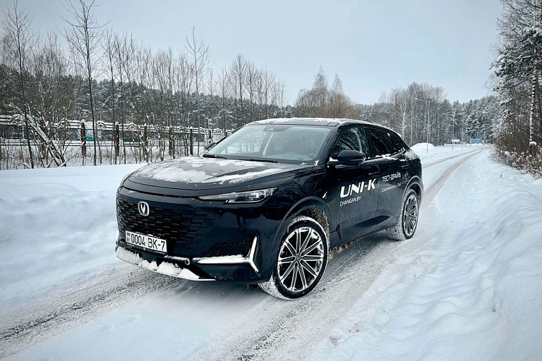 Перед нами флагман – поэтому в кроссовере куча опций, полный привод и 226 л.с. Замело. Надежда на крепкую лопату и полный привод. Кататься по сугробам на "динозаврах" не хочется. Охота раздать стиля – изо всех сил пафосно заехать на Зыбицкую. Changan Uni-K чисто внешне для такого подходит. Журналист Tochka.by устроил морозный тест нового китайского кроссовера. Киберпанк жив. Changan Uni-K выглядит как штурмовик из "Звездных войн". Узкая злая оптика, что передняя, что задняя. Высокая зона остекления. Машина кажется еще больше, чем есть на самом деле. А вообще кроссовер немаленький. Габариты – 4865 мм × 1948 мм × 1695 мм. Клиренс – 190 мм. Сильно покатая корма переходит в затейливый спойлер – дизайнеры поддали спорта. И настоящий выхлоп – на четыре трубы. Ой-вей! Какие же красивые "тапочки" обуты – мужского размера R21. Бесключевой доступ четко сработал. Показались массивные выдвижные ручки. Отряхнули ботиночки – и за руль. Перед глазами водителя цифровой кокпит – панель из трех сегменто
