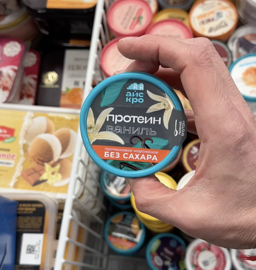 💯Самое низкокалорийное мороженное из тех что я нашел Я очень люблю мороженное, и каждый раз я пытаюсь найти и попробовать «ПП», «без сахара», «протеиновое» … мороженное. Совершенно случайно нашел очень интересный экземпляр. На сегодня в моей личной копилке это самый низкокалорийный экземпляр. ⚠️Что мы имеем: 98 калорий на 100 грамм Белка - 15 грамм Жира - 2 грамма Углеводов - 5 грамм Если учесть что в баночке всего 75 грамм, то получается очень даже не много!💪 Плюсики: ✅высокое содержание белка (для мороженного) ✅мало жира и углеводов ✅без сахара (эритрит и стевия) ‼️НО‼️Вкус «не ВАУ», замороженное молоко. Мы любим классическое мороженное как раз из-за сочетания жира и сахара. 📝Считаю, если ОЧЕНЬ хочешь мороженное, присмотрись к более калорийному варианту, он принесет тебе больше наслаждения, просто компенсирую перебор по мороженному чем-то другим) Так или иначе, этот экземпляр заслуживает внимания из-за своей калорийности!!! #ВХ_находки #пп #мороженное
