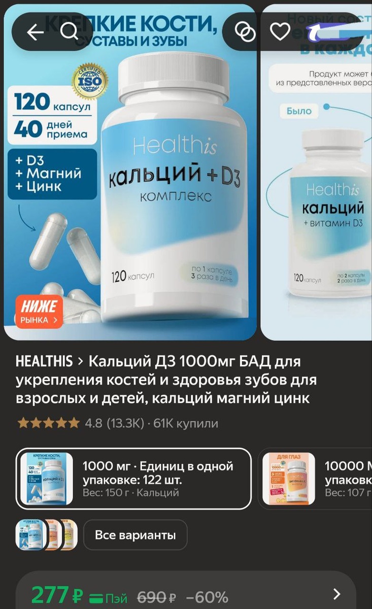 π»ΠΠ°Π»ΡΡΠΈΠΉ Π3 1000ΠΌΠ³ ΠΠΠ Π΄Π»Ρ ΡΠΊΡΠ΅ΠΏΠ»Π΅Π½ΠΈΡ ΠΊΠΎΡΡΠ΅ΠΉ ΠΈ Π·Π΄ΠΎΡΠΎΠ²ΡΡ Π·ΡΠ±ΠΎΠ² Π΄Π»Ρ Π²Π·ΡΠΎΡΠ»ΡΡ ΠΈ Π΄Π΅ΡΠ΅ΠΉ, ΠΊΠ°Π»ΡΡΠΈΠΉ ΠΌΠ°Π³Π½ΠΈΠΉ ΡΠΈΠ½ΠΊ - 277Ρ (Ρ.ΠΏΡΠΉ