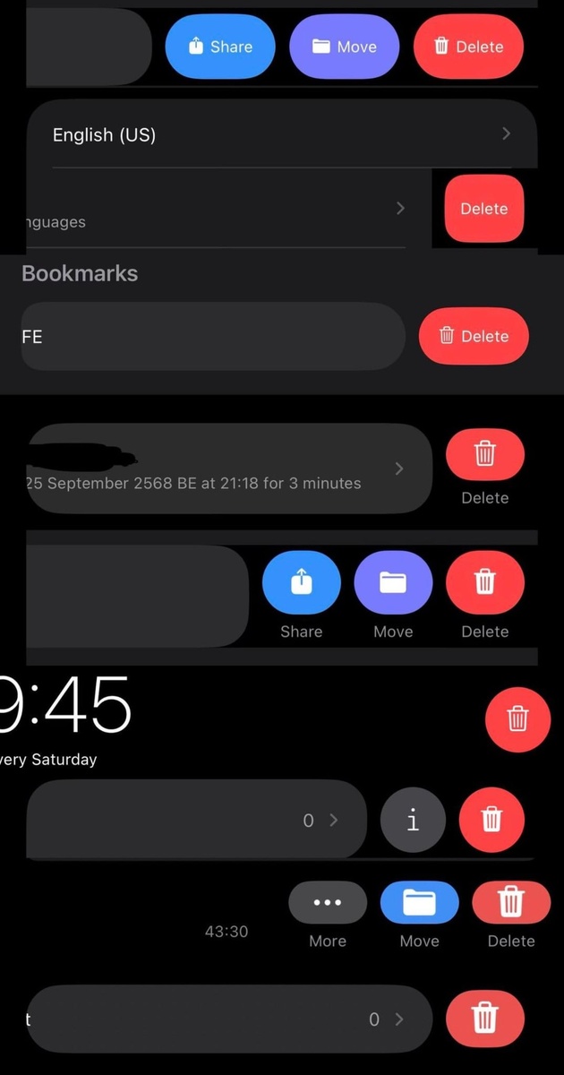 Девять (скорее всего, больше) оттенков... кнопки «Удалить» в системе и штатных приложениях iOS 26. (via)