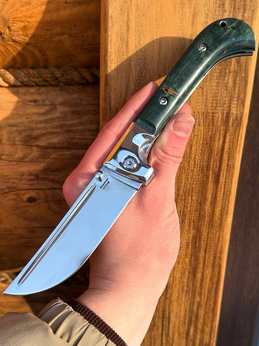! Почему «Пчак» — ваш надежный спутник на природе? - Сталь Х12МФ — одна из лучших отечественных инструментальных сталей: отличная стойкость к износу, уверенная работа даже при интенсивных нагрузках. - Твердость клинка 61–62 HRC — гарантирует остроту и долговечность, нож заточен до состояния «в бритву». - Удобный замок Liner-lock — надёжная фиксация и безопасность в использовании. - Эргономичные накладки из стабилизированной карельской березы (зеленая) — красиво и практично, не боится влаги и перепадов температуры. - Ножны из натуральной кожи в комплекте, возможно изготовление формованных (+8 000 ₽). - Пожизненная гарантия на отсутствие производственных дефектов — работаем честно и на совесть! 🔥 Цена: 14 500 ₽ 💥 По акции: 13.388 ₽ *Арт: 11579-1* Для заказа: ✍️ Telegram: [@Nazarklinokbot](https://t.me/Nazarklinokbot) 📱 WhatsApp/Viber: [ +79101343831](https://wa.me/79101343831) #ножи #складнойнож #кузница_назарова #пчак #х12мф #карельскаяберёза #полевойкухня #вналичии #подарок