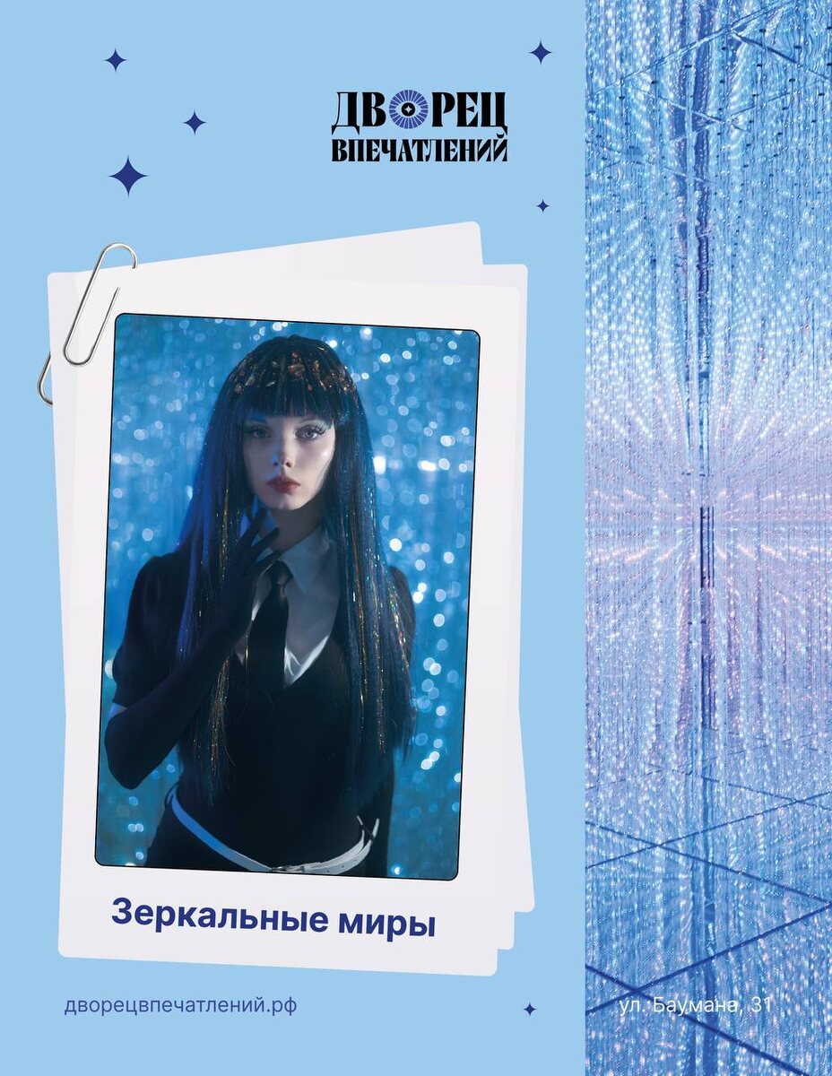 Снимки из Дворца Впечатлений — это не просто кадры. Это отражения бесконечных зеркал, светящиеся цветы и парящие хрустальные птицы. За каждым образом стоит ощущение полного погружения в магию пространства. 🎟️ Скидка в 10% на входные билеты по промокоду ТАЙНА. ✔ Добавь билеты в корзину ✔ Примени промокод ✔ Забери скидку Билеты на нашем сайте. 📍 Казань, Баумана 31 🕙 Ежедневно с 10:00 до 21:00 #ДворецВпечатлений #Казань