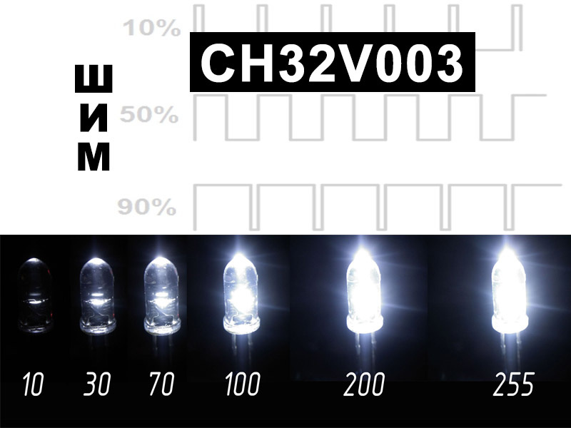 Микроконтроллер CH32V003 способен формировать ШИМ-сигналы (PWM), которые широко применяются в различных задачах: регулировка скорости DC-двигателей, генерация аудиосигналов, управление яркостью светодиодов и т.д.