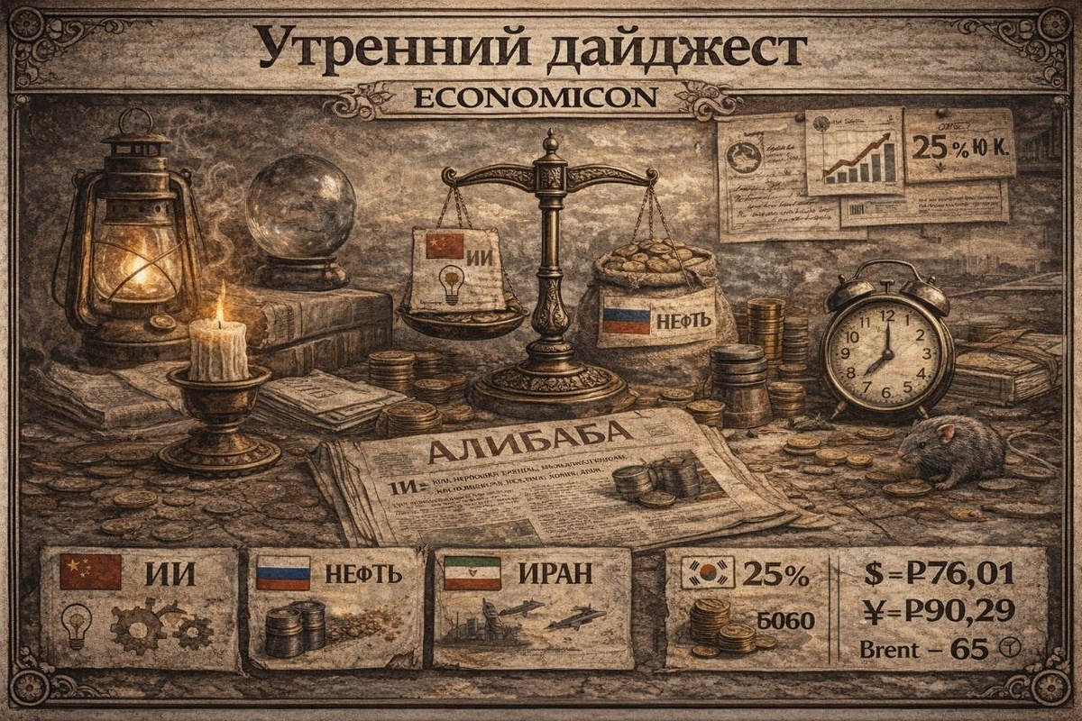 На связи утренний дайджест Economicon😎 💱 Валюта и сырьё на сегодня $ — ₽76,01 € — ₽90,29 ¥ — ₽10,93 Gold — ~5080 Brent — ~65 🧠 ИИ, который думает Alibaba выкатила Qwen3-Max-Thinking — самую «умную» модель мышления в своей линейке. Китай продолжает делать вид, что ИИ — это просто ещё одна отрасль, а не замена половины офисов. 🛢 Нефть, бензин и внезапная щедрость Минэнерго РФ готовится досрочно отменить запрет на экспорт бензина. Видимо, внутри всё настолько хорошо, что можно поделиться. Или просто деньги нужнее. 🔥 Газовая зима без сюрпризов — В Инчукалнском ПХГ (Прибалтика) осталось меньше 33% газа. — Запасы в ПХГ Европы упали ниже 45%. Если летом не будет рекордного закупа СПГ — следующую зиму Европа будет встречать с ~22% в хранилищах. История стабильности. ⚠️ Геополитика не отпускает Иранские акции падают — к региону подплывает американская «армада». Рынок, как обычно, понял намёк раньше официальных заявлений. 🇺🇸🇰🇷 Тарифы как стиль общения Трамп повысил пошлины для Южн