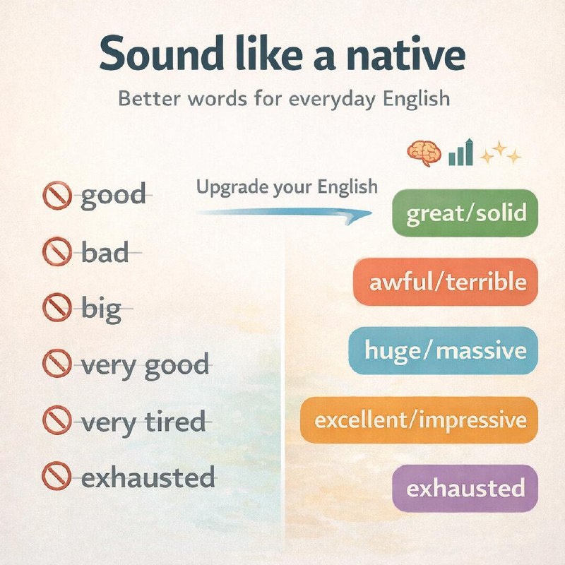 🙊 Альтернативы простым словам — звучите как носитель, 〰️ Большой пост 📌сохроняйте, чтобы не потерять! 〰️ 😊 ВМЕСТО "HAPPY" — Счастливый Альтернативы: 🔘DELIGHTED [dɪˈlaɪtɪd] — в восторге *I'm delighted to meet you! (Я в восторге от встречи с тобой!) 🔘THRILLED [θrɪld] — взволнован от радости *She was thrilled to get the job. (Она была в восторге от получения работы) 🔘ECSTATIC [ɪkˈstætɪk] — в экстазе, безумно счастлив *They were ecstatic about the news. (Они были в экстазе от новости) 🔘CONTENT [kənˈtent] — довольный, удовлетворённый *I'm content with my life. (Я доволен своей жизнью) 🔘JOYFUL [ˈdʒɔɪfl] — радостный *It was a joyful occasion. (Это было радостное событие) 😢 ВМЕСТО "SAD" — Грустный Альтернативы: 🔘MISERABLE [ˈmɪzrəbl] — несчастный, жалкий *I felt miserable all week. (Я чувствовал себя несчастным всю неделю) 🔘DEVASTATED [ˈdevəsteɪtɪd] — опустошённый, раздавленный *She was devastated by the loss. (Она была опустошена потерей) 🔘DEPRESSED [dɪˈprest] — подавл