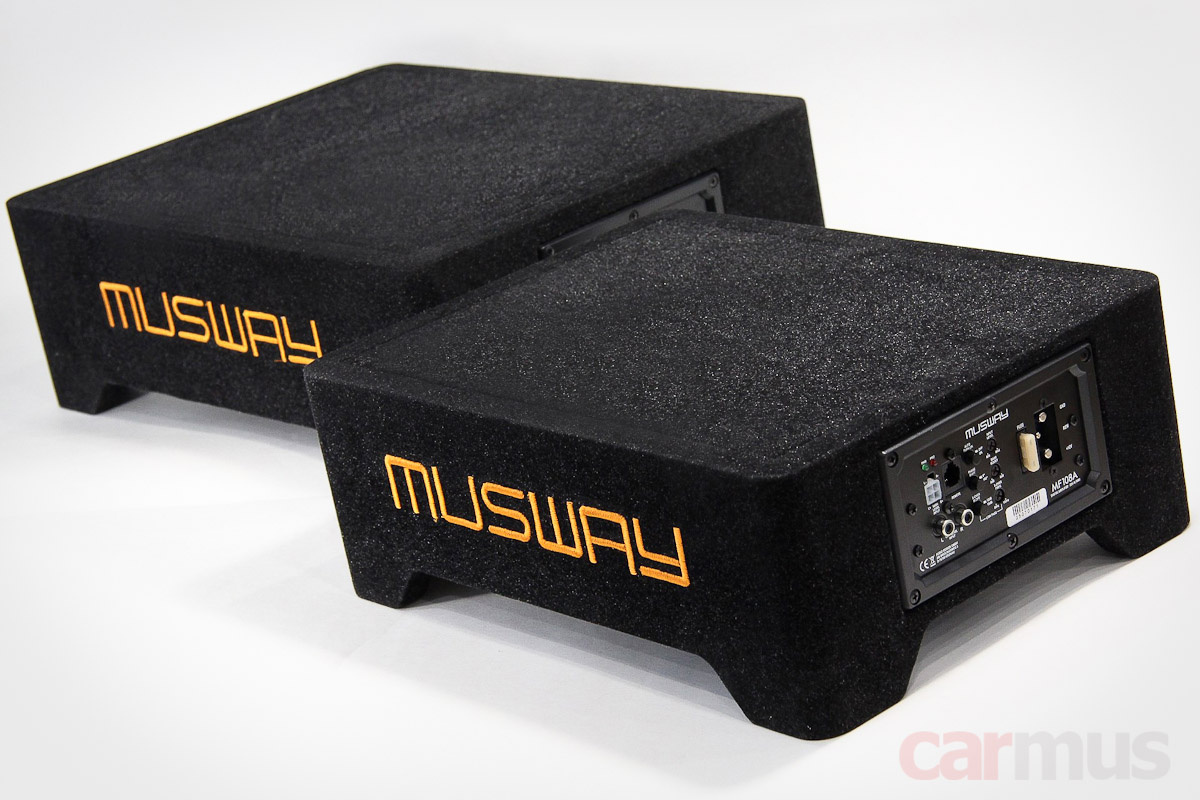 Сегодня на изучении сразу две модели: Musway MF110A на 10-дюймовом динамике и более компактный Musway MF108A – на 8-дюймовом. Цены на момент теста – 31900 и 27900 рублей, соответственно. Это активные сабвуферы, т. е., по сути, уже готовые решения для низкочастотного звена – динамик, корпус и усилитель.
