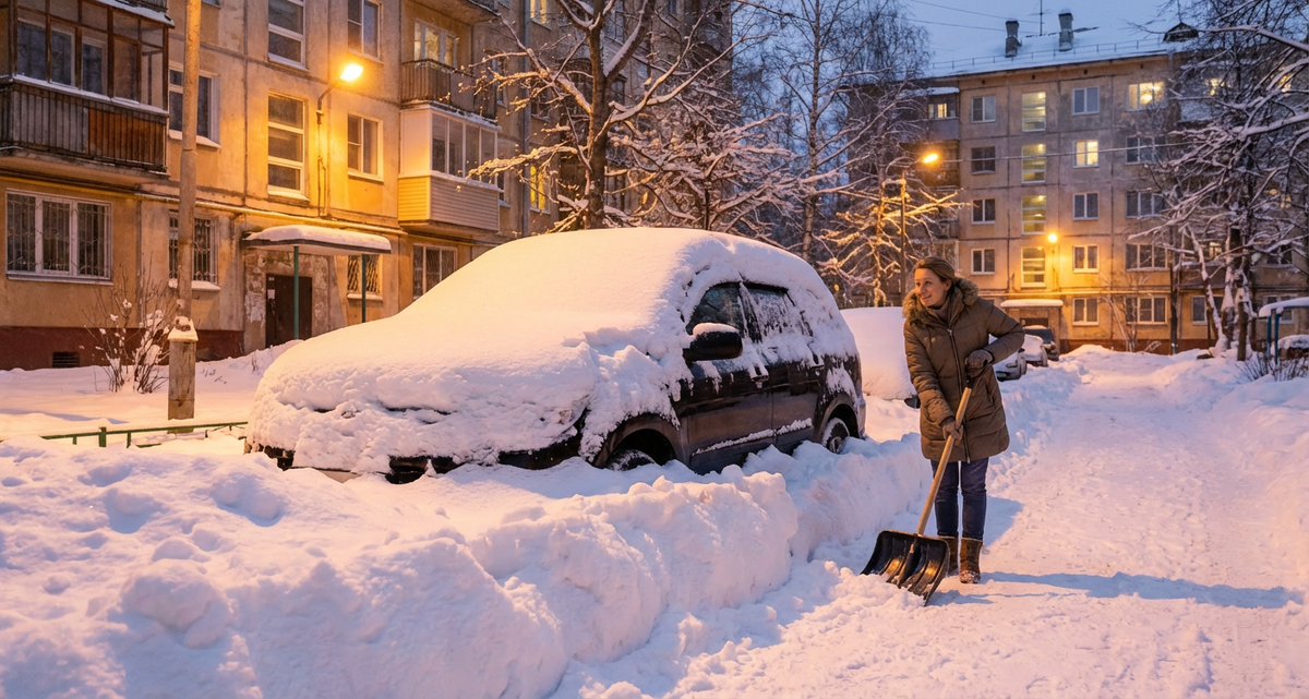 Зима в этом году снежная. Коммунальщики, как всегда, не справляются. Двор завален сугробами по пояс. Парковочных мест нет от слова совсем.