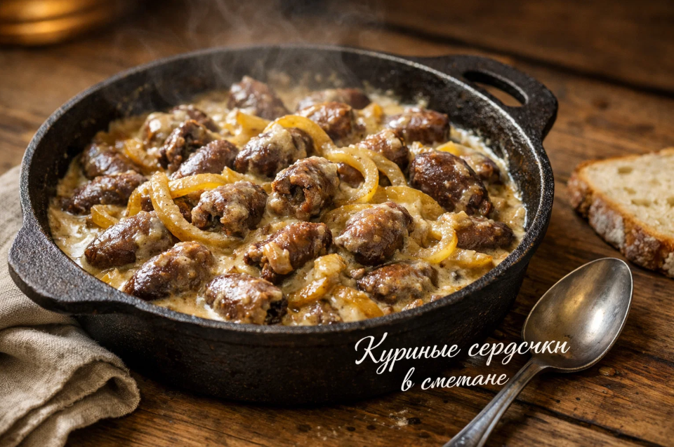 Попробуйте сделать этот рецепт хотя бы раз. Если вы до сих пор обходили субпродукты стороной, возможно, именно это блюдо изменит ваше мнение. Мягкие, нежные сердечки в шелковистом соусе, щедрая порция лука, аромат, от которого слюнки текут ещё на подходе к кухне. Это и есть настоящая домашняя еда — простая, сытная и невероятно вкусная.