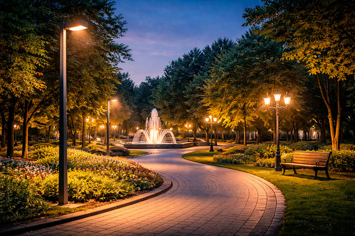 учётом эстетики, энергоэффективности и требований безопасности. Когда в парке темно — там пусто. Когда светло и уютно — туда идут люди. Всё просто. Парковое освещение