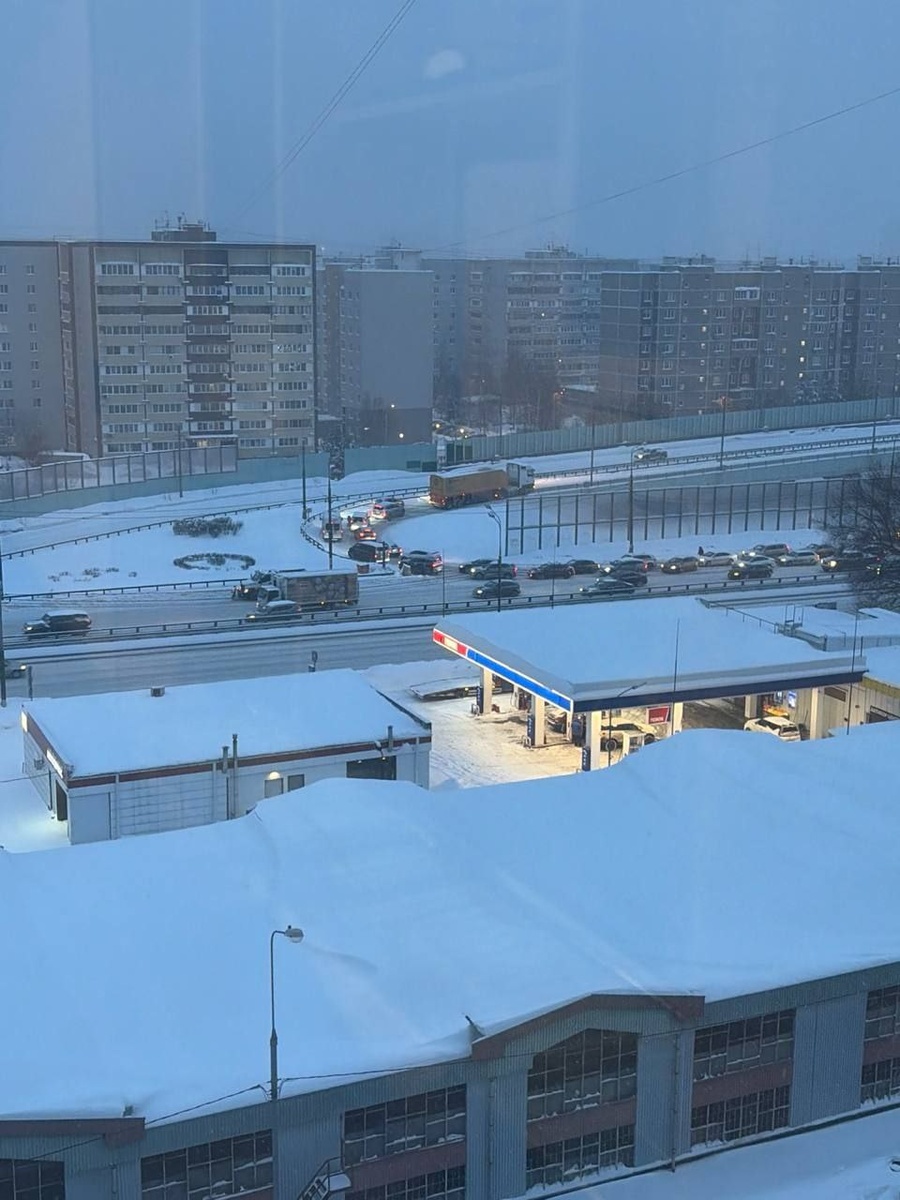 пешком по эстакаде в сторону МЦД Бутoвo. Уважаемые дальнобойщики, не выезжайте на дороги, шоссе и трассы — из-за вас парализуется движение, подождите окончания снегопада и чистки дорог. Сидите дома!☺️ 🚀Подпишись на Telegram канал Дрожжино
