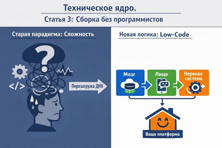 Мы прошли путь от диагноза «синдром посредника» до архитектуры спасения на трёх китах: бренд, стандарт, подписка. Вы уже видите контуры своего «цифрового дома». Но сейчас в голове возникает закономерный, даже здоровый скепсис: «А как это всё собрать технически? Я же не программист». И вы абсолютно правы. Вы и не должны им быть. Ваша новая задача — стать не кодером, а архитектором и сборщиком. Сегодня я покажу вам ПО-конструктор для вашего кооператива. Никакой магии, только логика, готовые кубики и ваша воля.