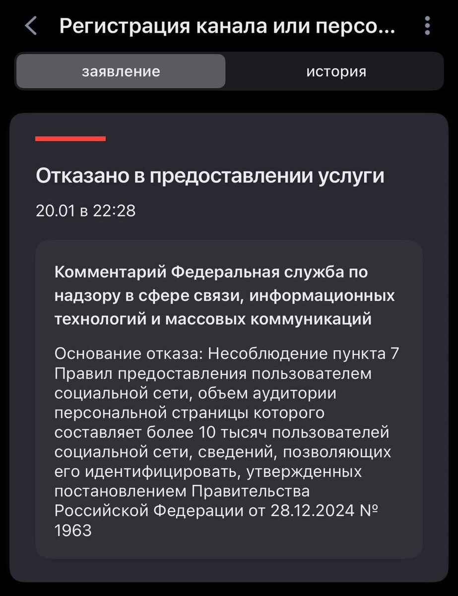 🫢 В прошлом месяце я сделал заявку на регистрацию канала в РКН. Ждал почти месяц, ожидая одобрения и в итоге мне отказали Все данные я указывал верные, я просто не представляю за что мне отклонили эту заявку 🌟 Сегодня попробую снова отправить её, надеюсь со второго раза получится 🌟 🖼 Vlad show