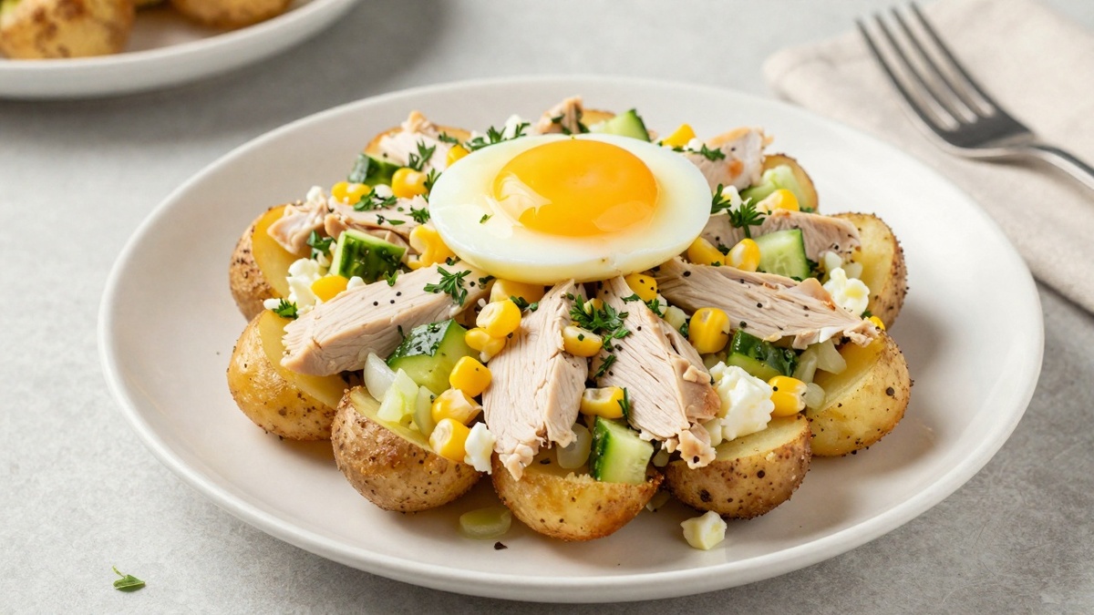 Сначала мы подготовим все основные ингредиенты: сварим яйца и филе, обжарим картофель. Затем соединим все составляющие начинки и в финале соберем наш салат в красивое «гнездо». Процесс достаточно прост, главное – следовать шагам.