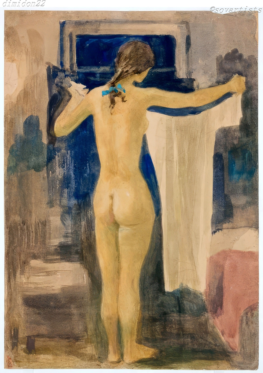 Самохвалов Александр Николаевич (09(21).08.1894, Бежецк Тверской губернии - 20.08.1971, Ленинград). «Утро. Няня». 1964 год. Бумага, акварель; 577 х 408 мм.; (Волгоградский музей изобразительных искусств имени И.И. Машкова). Не характерно для Самохвалова. Он обычно писал молотобойцов! Александр САМОХВАЛОВ Метростроевка со сверлом. 1937 Холст, масляно-восковая темпера. 205 × 130 ГРМ Кто знает название этой Картины?