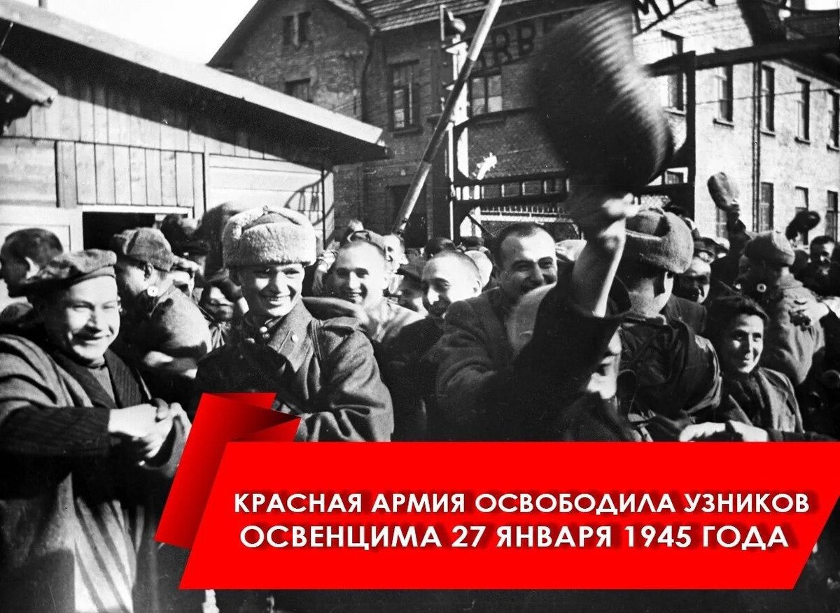 ▪️ В заключительный период Второй мировой войны, 27 января 1945 года войска 1-го Украинского фронта освободили крупнейший концлагерь Освенцим (немецкое название Аушвиц), находящийся на территории Польши. ▪️ Благодаря быстрым действиям Советской армии освобождены заключённые, которых нацисты не успели убить. Гитлеровцы не смогли уничтожить не только узников, но и следы своих преступлений. ▪️ Перед глазами Советских воинов-освободителей предстали крематории и газовые камеры, орудия пыток, тысячи килограммов человеческих волос и перемолотых костей, подготовленных к отправке в Германию. ▪️ В лагере практиковались ужасы страшных экспериментов и опытов. В качестве эксперимента заключённых заражали малярией, гепатитом и другими болезнями. Испытывались новейшие фармацевтические препараты. Нацистские врачи тренировались в проведении операций на здоровых людях. Проводились кастрации молодых людей. В Освенциме умерло более двух с половиной миллионов человек. ▪️ В память о преступлениях на