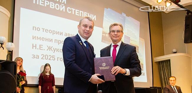 Е. Жуковского за 2025 год Торжественная церемония награждения лауреатовсостоялась 20 января в Доме учёных ЦАГИ. Премию первой степени получила работа, выдвинутая на конкурс Национальным исследовательским центром «Институт имени Н.Е. Жуковского», – монография «Современные тенденции развития технологий обеспечения безопасности и надёжности авиатранспортных систем» авторского коллектива: М.В. Волков, Д.Е. Ефанов, И.М. Максименко, В.С. Шапкин. Золотой медали удостоен первый заместитель генерального директора НИЦ «Институт имени Н.Е. Жуковского», доктор технических наук, профессор Василий Шапкин. Исследование нацелено на решение актуальной и сложной проблемы создания технологии управления безопасностью и надёжностью авиационных транспортных систем, отвечающей современным требованиям, состоянию и направлениям развития авиационной отрасли. Премию второй степени жюри присудило авторскому коллективу НИЦ «Курчатовский институт» в составе Е.Н. Каблова, А.Г. Евгенова, Н.В. Петрушина, М.М. Бакра