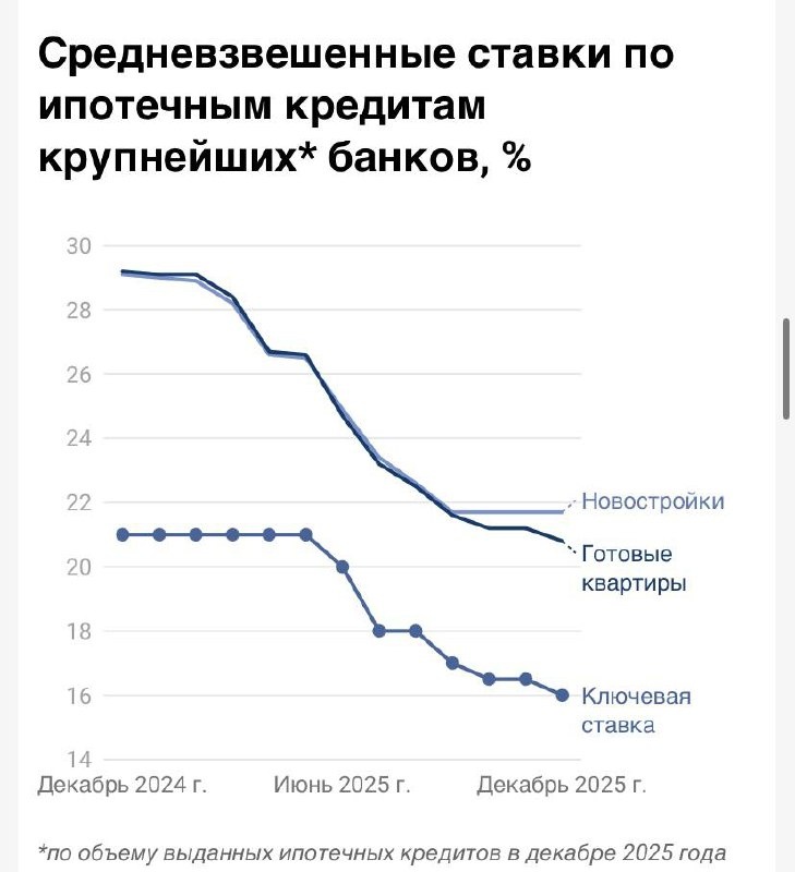 За последний месяц средневзвешенные ставки по рыночным ипотечным программам упали на 0,1–0.4 п.п.: - в сегменте готовых квартир, - готовых жилых домов, - и особенно — ИЖС (наибольшее снижение). В годовом выражении падение составило 6,1–9,5 п.п. — рекордное за последние годы. Ставка по «Семейной ипотеке» остаётся на минимально возможном уровне — 6% ℹ️ Ставки демонстрируют устойчивую нисходящую динамику с середины 2025 года, и хотя условия ипотеки становятся будто выгоднее, особенно для тех, кто рассматривает покупку готового жилья или строительство дома, они всё ещё остаются на исторически высоком уровне. 🧊Монолит