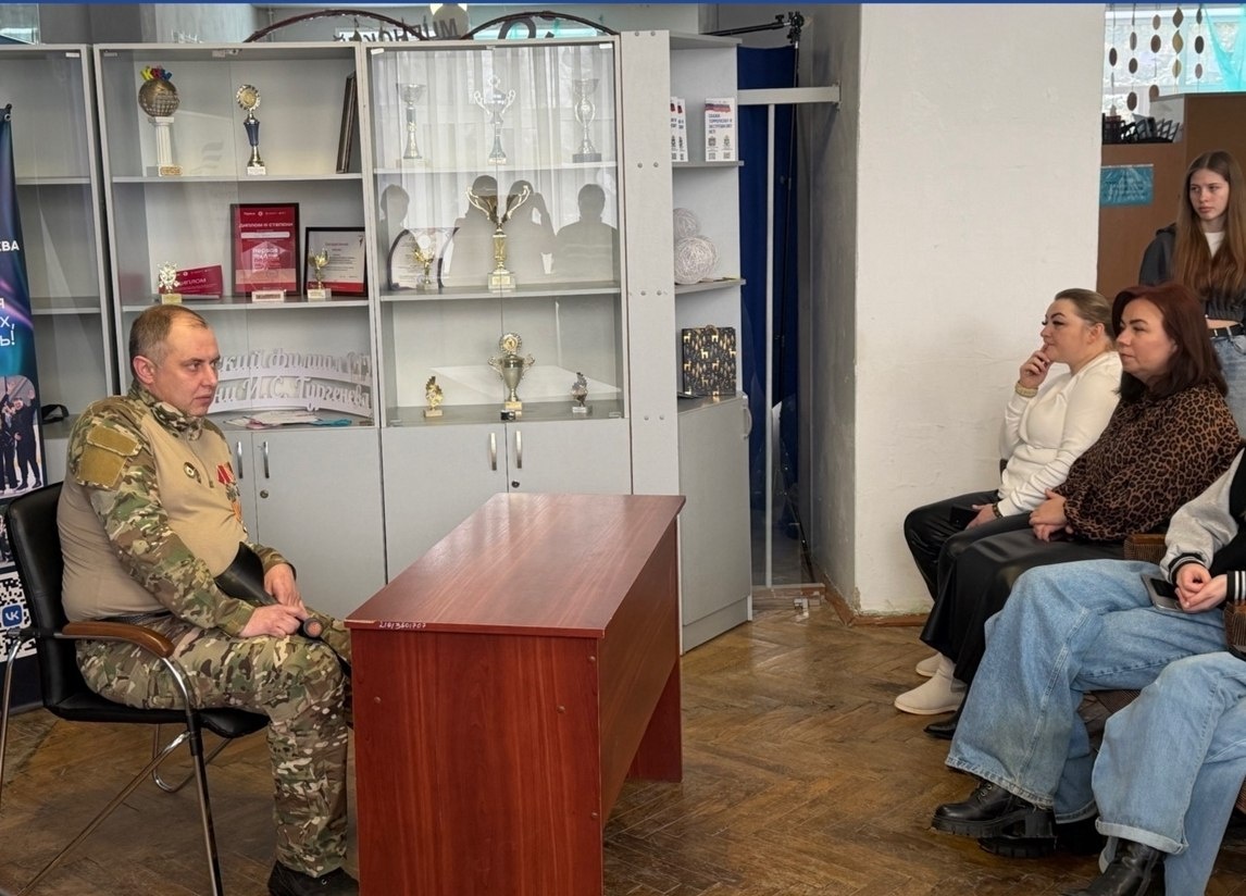 » Так называлось патриотическое мероприятие, организованное в Мценском филиале ОГУ им. И.С. Тургенева, в ходе которого студенты поговорили с ветераном специальной военной операции Романом Сергеевым. Почетный гость поделился с молодым поколением личными воспоминаниями о боевых подвигах, рассказал историю ранения, показал заслуженные награды. - Ребята внимательно слушали ветерана и задавали множество вопросов, на которые Роман Владимирович с готовностью отвечал, - отметили в филиале. Также в рамках мероприятия студенты ознакомили всех присутствующих с символами нашей Родины, рассказали об интересных исторических фактах, а в заключение прочитали стихотворение «Мы духом сильны и Отечеству служим». https://mcenskij-kraj.ru/news/mcenskie-studenty-vstretilis-s-veteranom-svo/