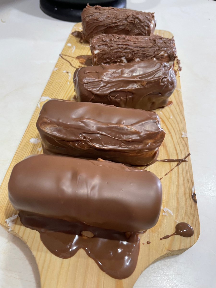 Вернулась домой и сначала занялась творожными сырками. Вытащила их из морозилки. Растопила купленные в магазине две плитки шоколада и обмакнула в них сырки. Шоколада на все сырки не хватило, его нужно больше. Буду знать.