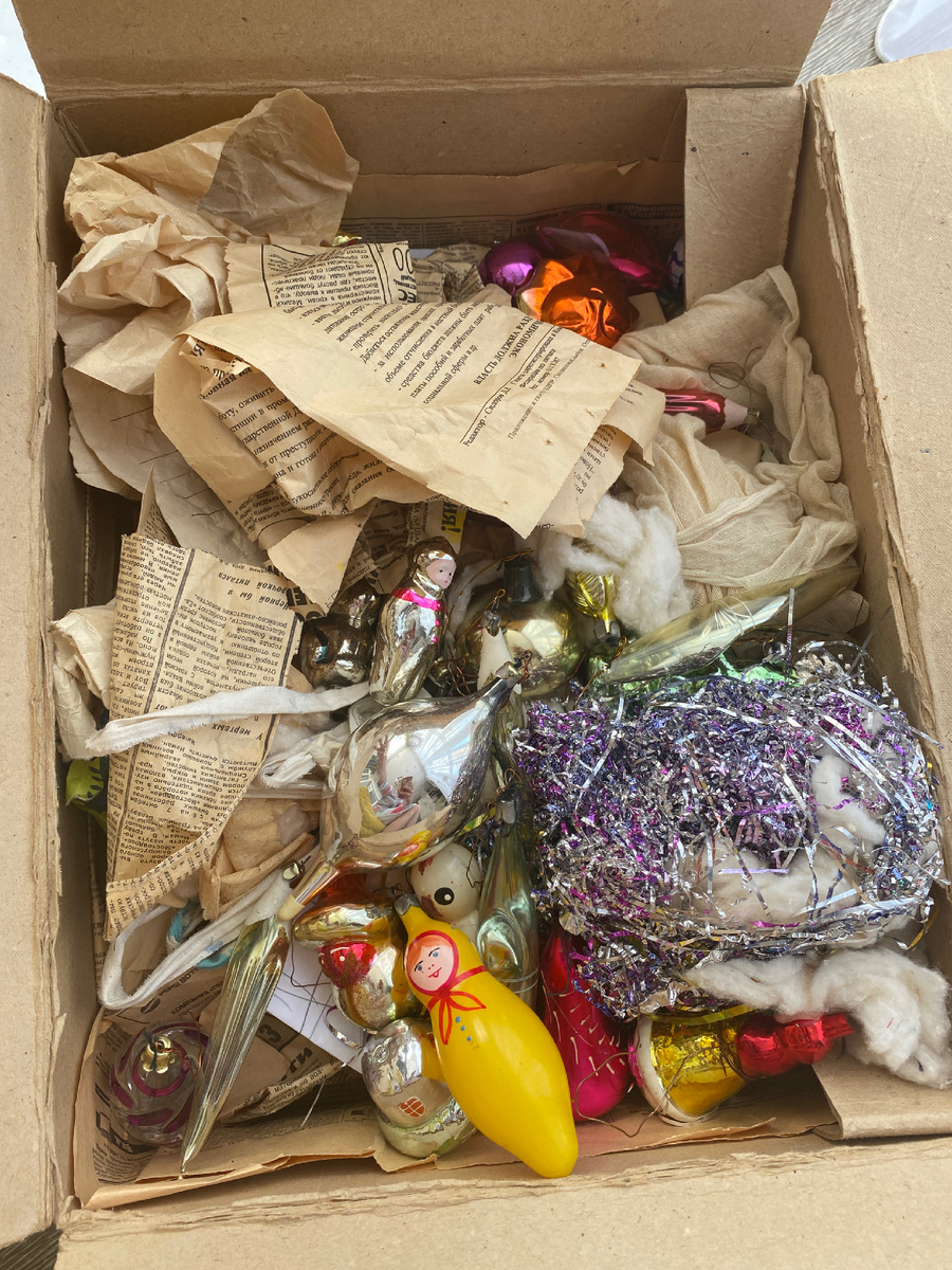 А там, ни много-ни мало, советские елочные игрушки бабулечки нашей.