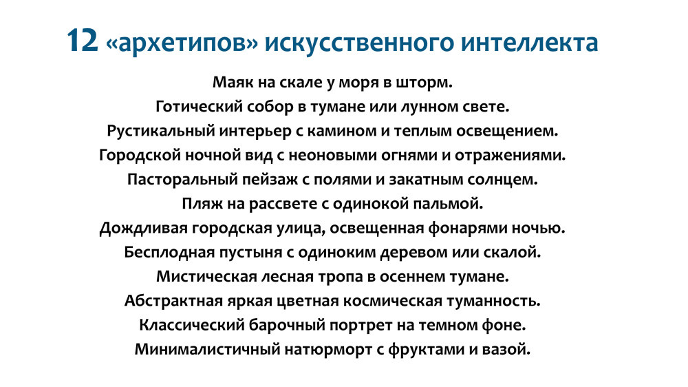 Список ИИ-архетипов: Вот, сгенерил картинки для каждого из них: Интересно, ИИ упирается в одну из этих 12 сцен и останавливается?