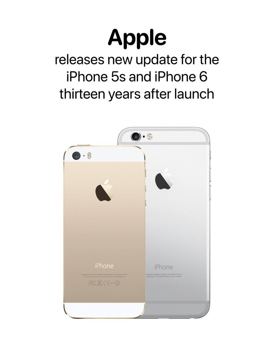 Apple выпустила новое обновление для iPhone 5s и iPhone 6, спустя тринадцать и двенадцать лет после их запуска соответственно 😳