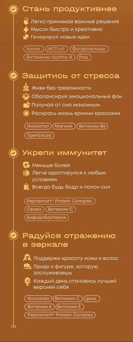 Введя всего один прием в день в виде коктейля и через две недели ты увидишь крутой результат на своем самочувствии и не захочешь останавливаться!