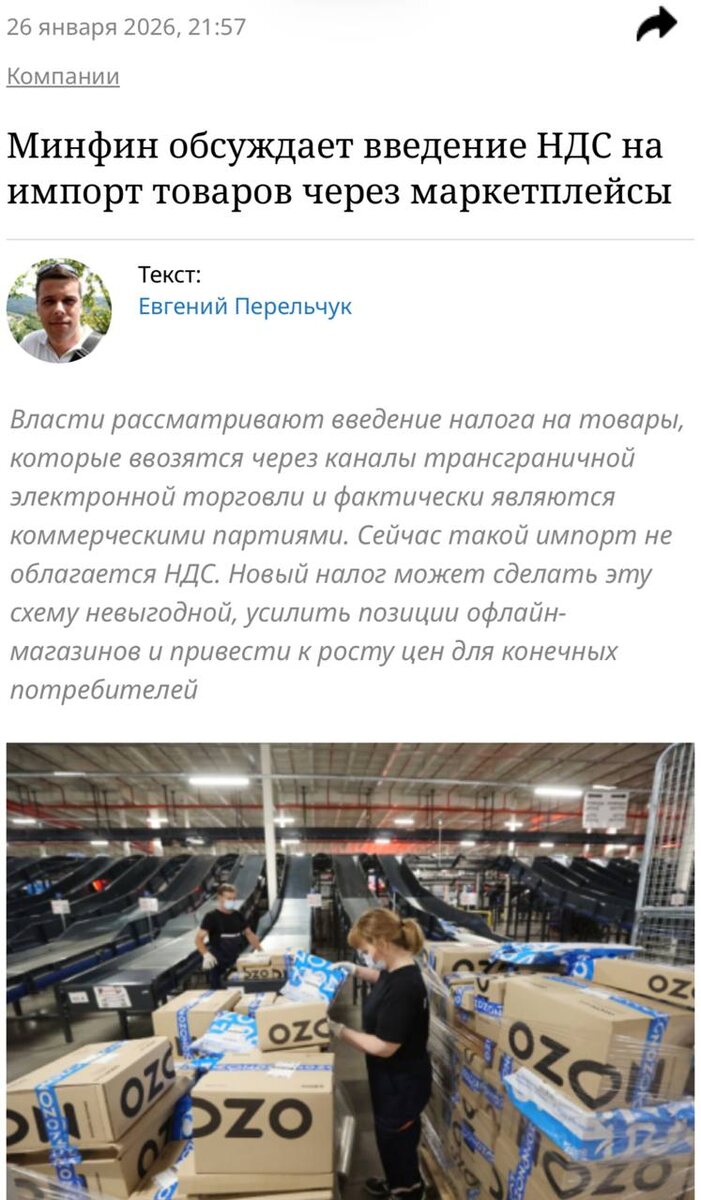 🔴 Сейчас большая часть товаров с китайских складов оформляется как некоммерческие посылки, поэтому на них не платят налоги. Благодаря этому и есть серые айфоны, дешевая техника, косметика и одежда по адекватным ценам. 🔴 Офлайн-магазины при этом платят за импорт по полной и просто не выдерживают конкуренции. А госбюджет, по оценкам, теряет на этом около 440 миллиардов рублей в год. 🔴 Минфин и Минпромторг предлагают ввести НДС для ВСЕХ зарубежных товаров без исключений. Официальная цель — уравнять маркетплейсы с обычным ритейлом и убрать льготный режим. Но фактически это значит, что цены на маркетплейсах полетят вверх, и платить за это будут ПОКУПАТЕЛИ. Маркетплейсовые шопоголики, держитесь 😐 CtrlAltDelights- подписаться