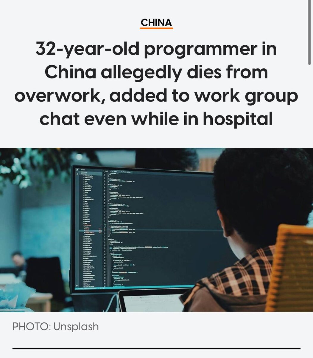 умер. После повышения 32-летний программист трудился с 7 утра до 11 вечера, спал всего 6 часов, справлялся с задачами целой команды и получал около 200 тысяч рублей в месяц. Когда его госпитализировали с тяжёлым переутомлением, коллеги просто добавили его в рабочие чаты, чтобы он продолжал выполнять задачи с дедлайнами. Настоящий «успешный успех» 😐 NeuroFlux #Китай #айти #переутомление #работа #программист #успех #здоровье #трудоголизм #жизнь #технологии
