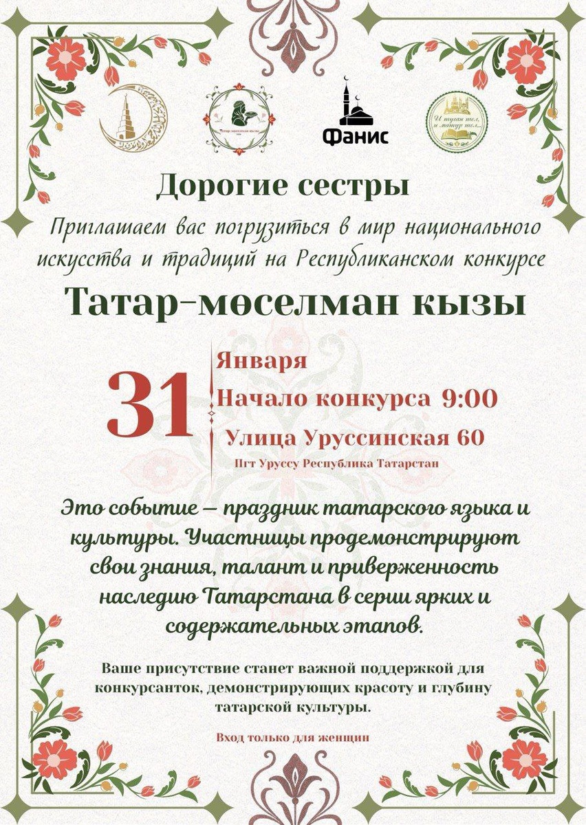 ‼️В Уруссу пройдет Республиканский конкурс «Татар-мөселман кызы 2026» среди участниц образовательных организаций ДУМ РТ