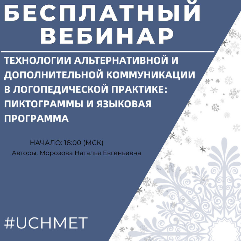 " Дата проведения: 28.01.2026 Начало: 18:00 (МСК) https://www.uchmet.ru/events/item/4034287/ Важно понимать, что коммуникация — это не только слова. Есть много дополнительных средств, которые облегчают как понимание, так и выражение мыслей. Этими средствами пользуются все люди, когда процесс коммуникации затруднён: они прибегают к жестикуляции, письменной речи и символическим изображениям (картинкам, фотографиям, рисункам, значкам, пиктограммам, системам символов). Данные средства предоставляют в распоряжение «неговорящего» ребёнка инструмент, позволяющий ему выразить свои желания, потребности, чувства. Вебинар познакомит с языковой программой «Макатон», а также рассмотрит базовый словарь программы. Ведущий вебинара раскроет систему пиктограмм, их преимущества и недостатки, а также расскажет, кто является пользователями PIC (пиктографическая идеографическая коммуникация). Содержательные вопросы вебинара: 1. Языковая программа «Макатон» как метод альтернативной и дополнительной комму