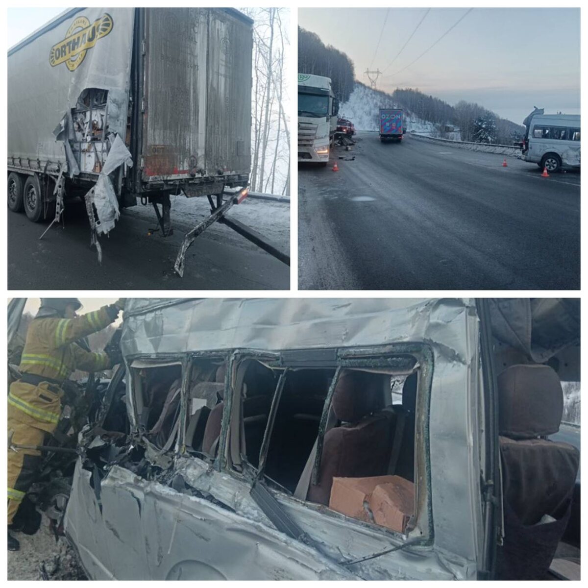 12 человек пострадали. 1 в тяжелом состоянии, они в больнице. Уголовное дело возбуждено по статье 238 УК РФ «Оказание услуг, не отвечающих требованиям безопасности». По предварительным данным, водитель грузовика FAV не справился с управлением на спуске, прицеп занесло — он столкнулся с Toyota Hiace, после чего маршрутку отбросило на вторую фуру. Следователи устанавливают все обстоятельства и причины произошедшего,сообщили в СК по Иркутской области. 📲 Подписывайся на нас в МАХ
